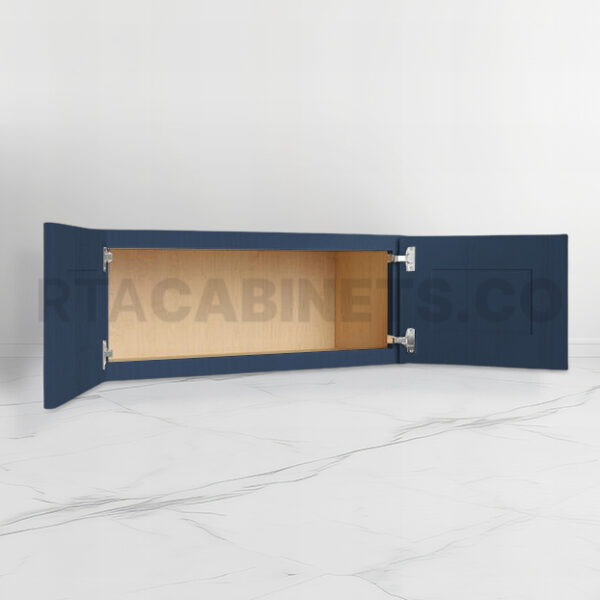 The Blue Shaker 12 H Double Door Wall Cabinet, available in 30″W x 12″H x 12″D, 33″W x 12″H x 12″D, and 36″W x 12″H x 12″D dimensions, combines modern sophistication with functional design. Its rich navy blue Shaker finish adds a vibrant and stylish touch to any kitchen, seamlessly integrating with various design themes. The double doors enhance accessibility while contributing to the cabinet’s overall aesthetic appeal.