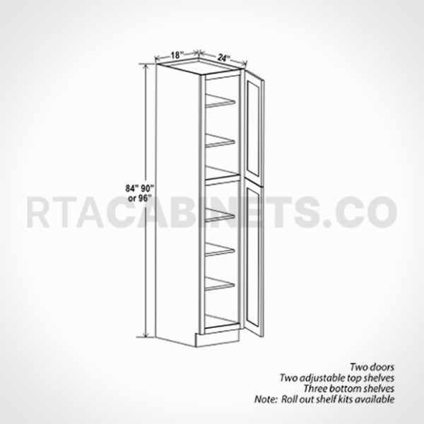 Maximize your kitchen storage with the Charleston White Raised Panel 18 W Utility Pantry Cabinet, a perfect blend of practicality and timeless sophistication. Offered in heights of 84″, 90″, and 96″, with a depth of 24″, this pantry cabinet features an elegant raised panel design in a classic white finish, seamlessly integrating into any kitchen decor. Its design optimizes vertical storage space, making it an invaluable addition to any kitchen setup.
