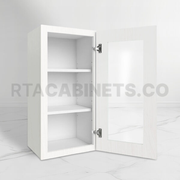 The White Shaker 36 H Single Door Wall Cabinet with Glass Door, available in sizes of 15″W x 36″H x 12″D and 18″W x 36″H x 12″D, enhances your kitchen with a touch of elegance and functionality. Featuring a classic Shaker white finish, this White Shaker 36 H Single Door Wall Cabinet with Glass Door blends seamlessly into a variety of kitchen styles, offering both beauty and practicality. The clear glass door adds a sophisticated flair and allows for a stylish display of your cherished kitchenware.