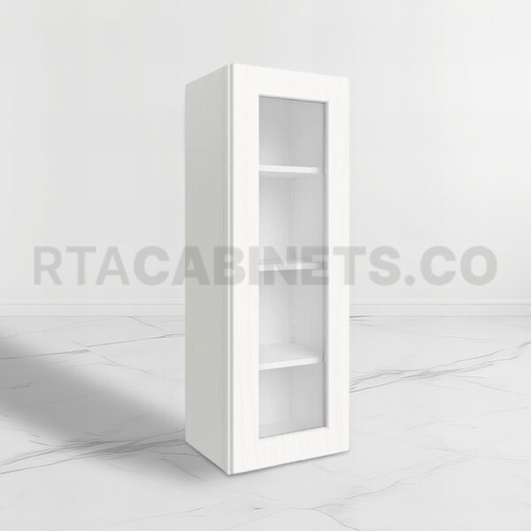 The White Shaker 42 H Single Door Wall Cabinet with Glass Door, available in sizes of 15″W x 42″H x 12″D and 18″W x 42″H x 12″D, introduces a refined blend of classic elegance and modern functionality to your kitchen. Finished in a pristine Shaker white, this White Shaker 42 H Single Door Wall Cabinet with Glass Door enhances various decor styles while the clear glass door allows a stylish glimpse of your stored items, combining both beauty and practicality.